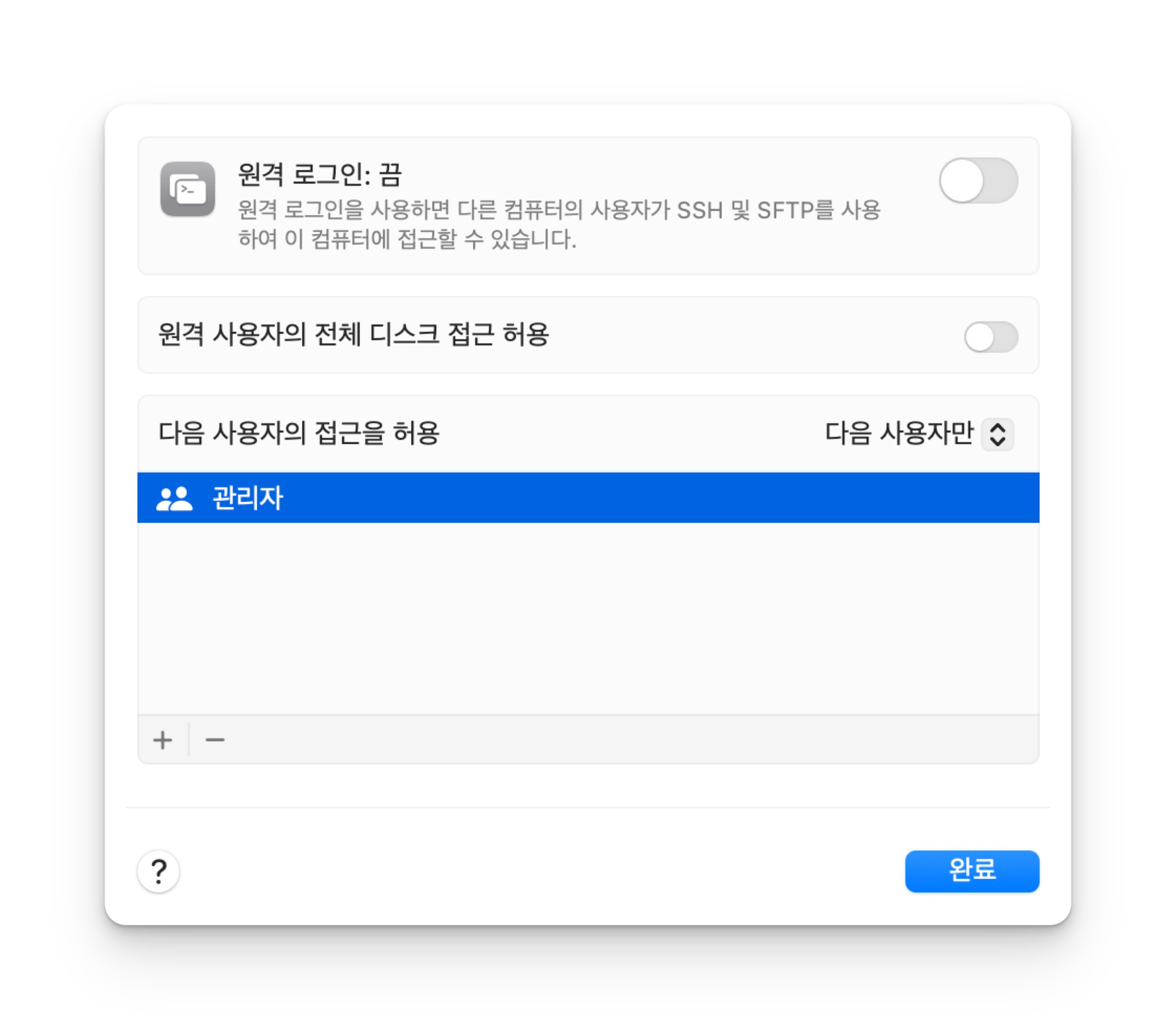 맥 미니를 샀는데, 순전히 서버용도로 사용하려고 한다. 그래서 초기 설정 이후에는 ssh로만 접근할 예정이므로 외부에서 ssh 접근이 가능하도록 허용해보자.