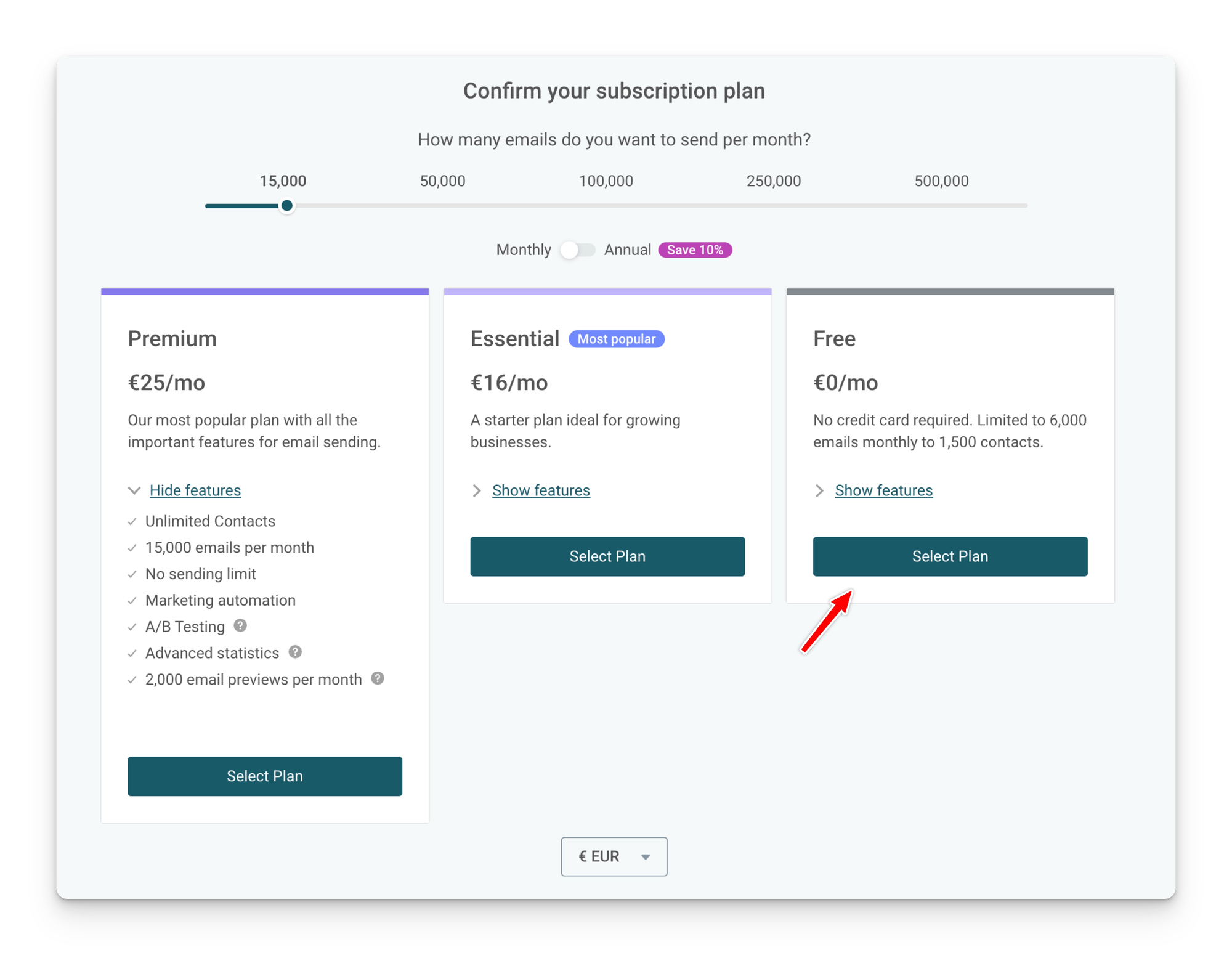 회원가입을 진행하면 다음과 같이 요금제를 선택할 수 있다.
