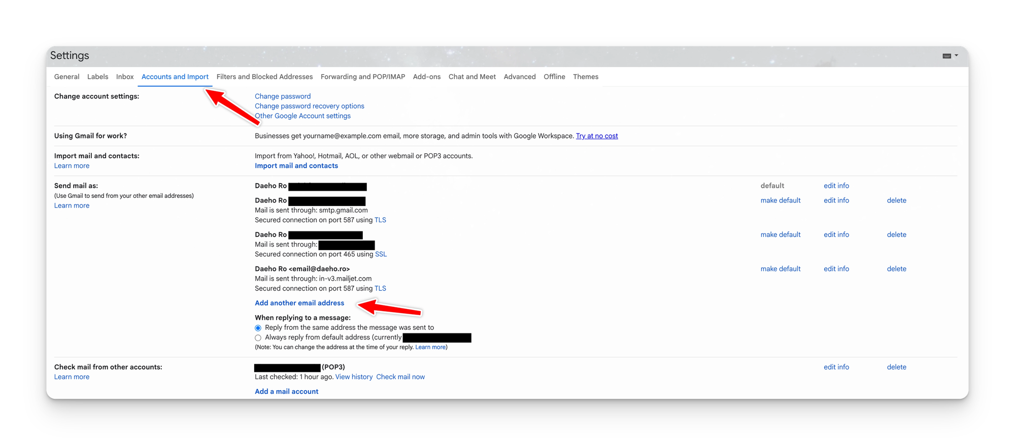 만약 라우팅 받은 Gmail 계정이 오직 업무용 이메일을 수신하기 위함이라면, 발신 메일 주소도 항상 업무용 이메일로 지정하는게 나을 수도 있다.