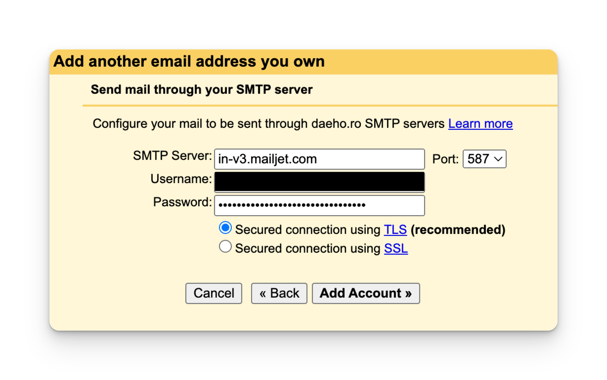 SMTP 설정에 필요한 모든 정보가 수집되었다.