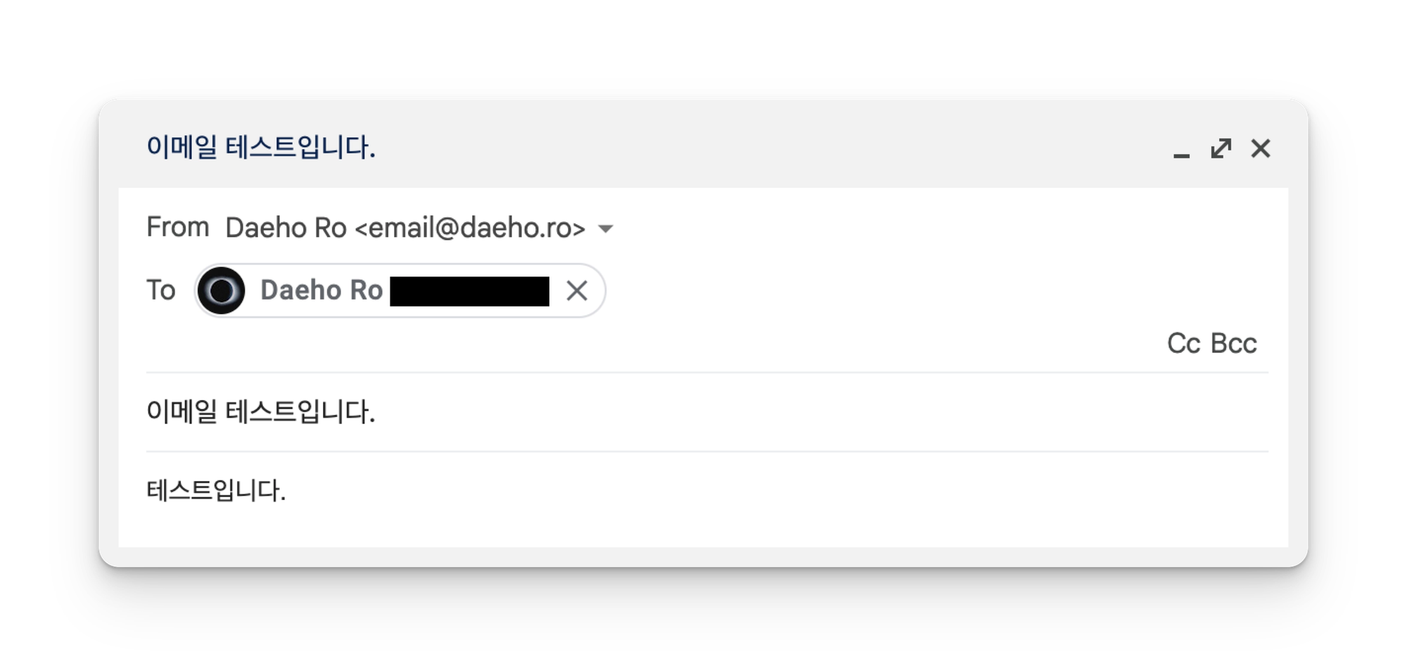 이제 이메일 발송 테스트를 진행해봐야 한다. 새 이메일 쓰기를 눌러보면 From 부분에서 이메일을 선택 가능하게 될 것이다. 설정한 업무용 이메일이 보인다면 이를 클릭하고 전혀 다른 이메일로 발송을 테스트해보자.