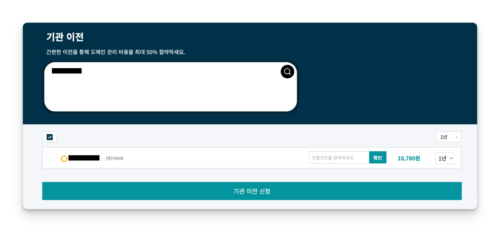 기존에 가비아에서 도메인을 오래 유지했는데, 호스팅케이알의 도메인 비용이 워낙 저렴해서 기관 이전을 신청해보기로 결정했다.