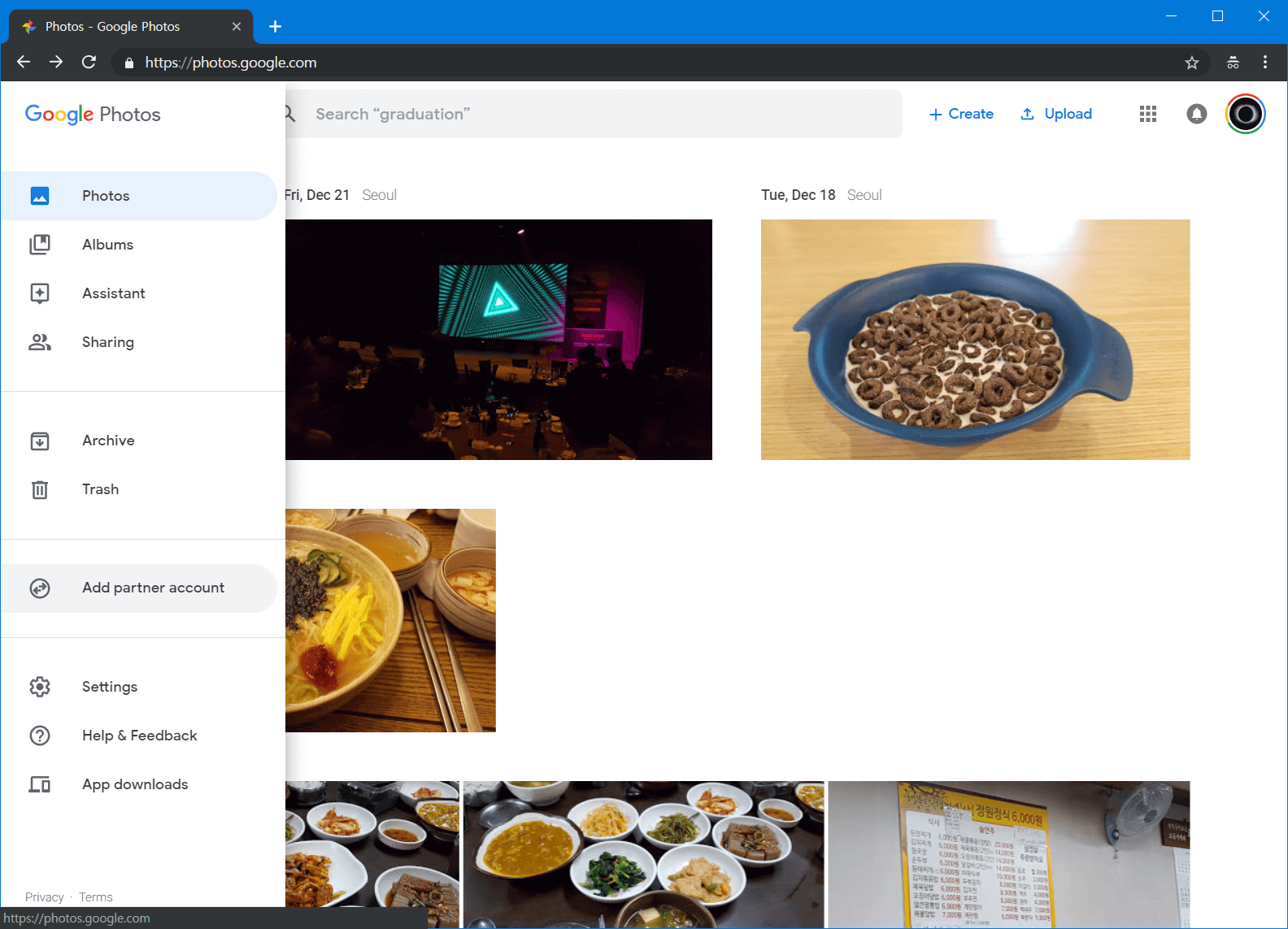 구글 포토의 좌측 메뉴에서 [파트너 계정 추가]를 찾습니다.