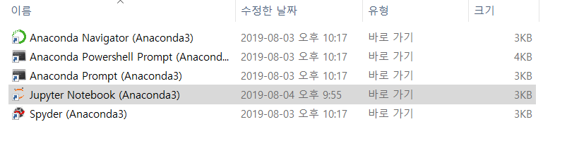 설치가 완료되면 Jupyter Notebook이 저절로 설치가 된 것을 확인할 수 있습니다. 윈도우 10에서는 설치된 Jupyter Notebook의 아이콘을 우클릭하여 자세히 > 파일 위치 열기를 누르면 바로가기 아이콘이 위치한 폴더가 열립니다. 여기서 Jupyter Notebook을 우클릭하여 속성에서 값을 일부 바꿔줍니다.