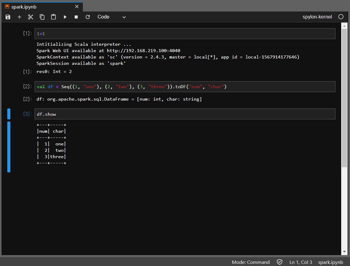 spylon-kernel을 눌러서 스파크가 정상 동작하는지 테스트를 합니다.