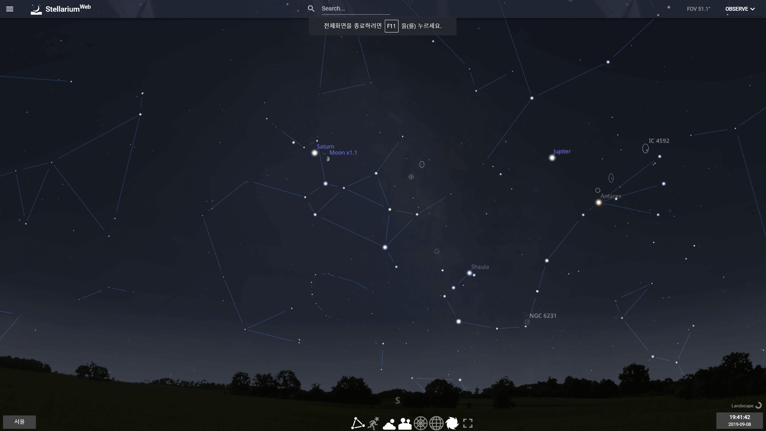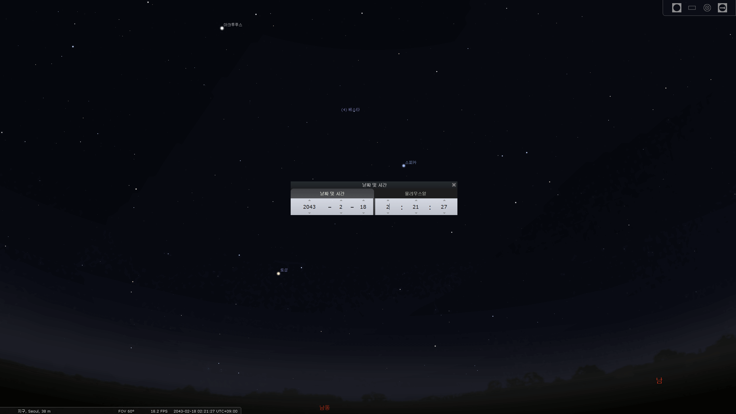 자, 이제 원하는 속도, 장소, 시간으로 밤하늘의 별들이 어떻게 변화하고 움직이는지 알아보세요. 그리고 내가 봤던 천체가 과연 어떤 천체인지 직접 찾아보시기 바랍니다.