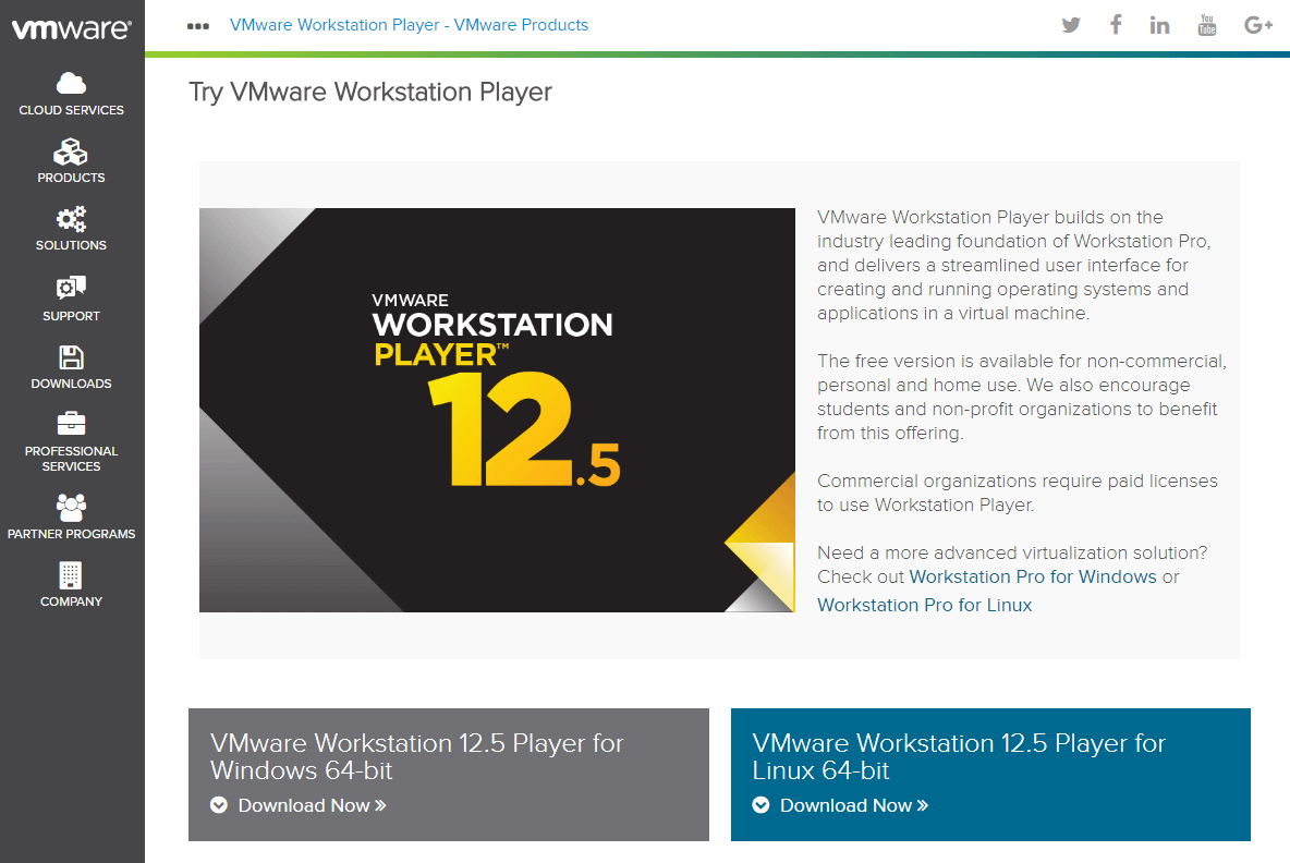 먼저 VMware 홈페이지[링크]에서 프로그램을 받습니다. 굉장히 많은 프로그램들이 있기 때문에 Workstation Player를 찾아서 받으셔야 합니다. 설치 과정에 딱히 어려움은 없습니다. 찬찬히 읽어보면서 다음 버튼을 눌러줍니다.