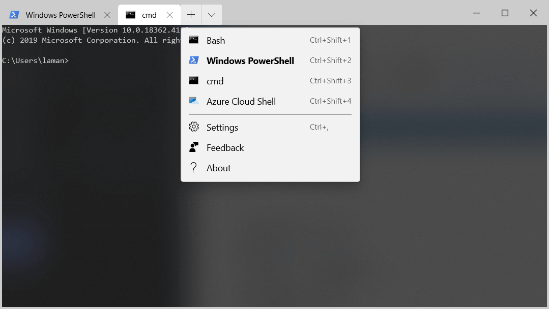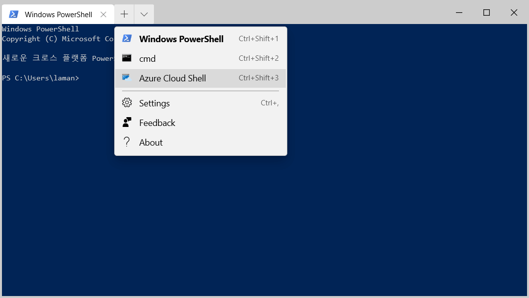"defaultProfile" : "{00000000-0000-0000-ba54-000000000002}",그리고 Bash를 선택해서 실행해보면 아래와 같은 화면을 볼 수 있습니다.